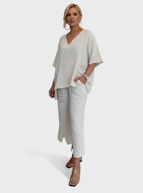 La vestibilità è pensata per accompagnare i movimenti con fluidità, mantenendo sempre una forma ordinata e armoniosa. Il tessuto si adatta con naturalezza, offrendo comfort durante tutta la giornata senza rinunciare allo stile